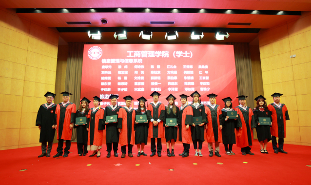 在庄严的国歌声中,典礼正式开始。经济与管理学部名誉主任连平首先为毕业生们送上毕业寄语。他对931位圆满完成学业的毕业生们表示了热烈的祝贺和衷心的祝福。同时,对即将踏上人生新征途的同学们提出了三点期望和要求:第一要坚守经邦济世的家国情怀,积极践行“以天下为己任”的价值观,回报家国、服务社会;第二要葆有勇立潮头的奋斗姿态,继续保持学习探索的热情,关注经济与管理领域最新的理论前沿,勇于实践创新,在大变局中大胆作为;第三要秉承海纳百川的开放气度,拥有开放包容的胸怀,汲取合作共赢的人生智慧,为“实现中华民族的伟大复兴”和“构建人类命运共同体”的伟大进程贡献一份力量。最后,连平希望每一位毕业生在走向社会时,都能克己达人,宠辱不惊,学会换位思考,明确自身定位。