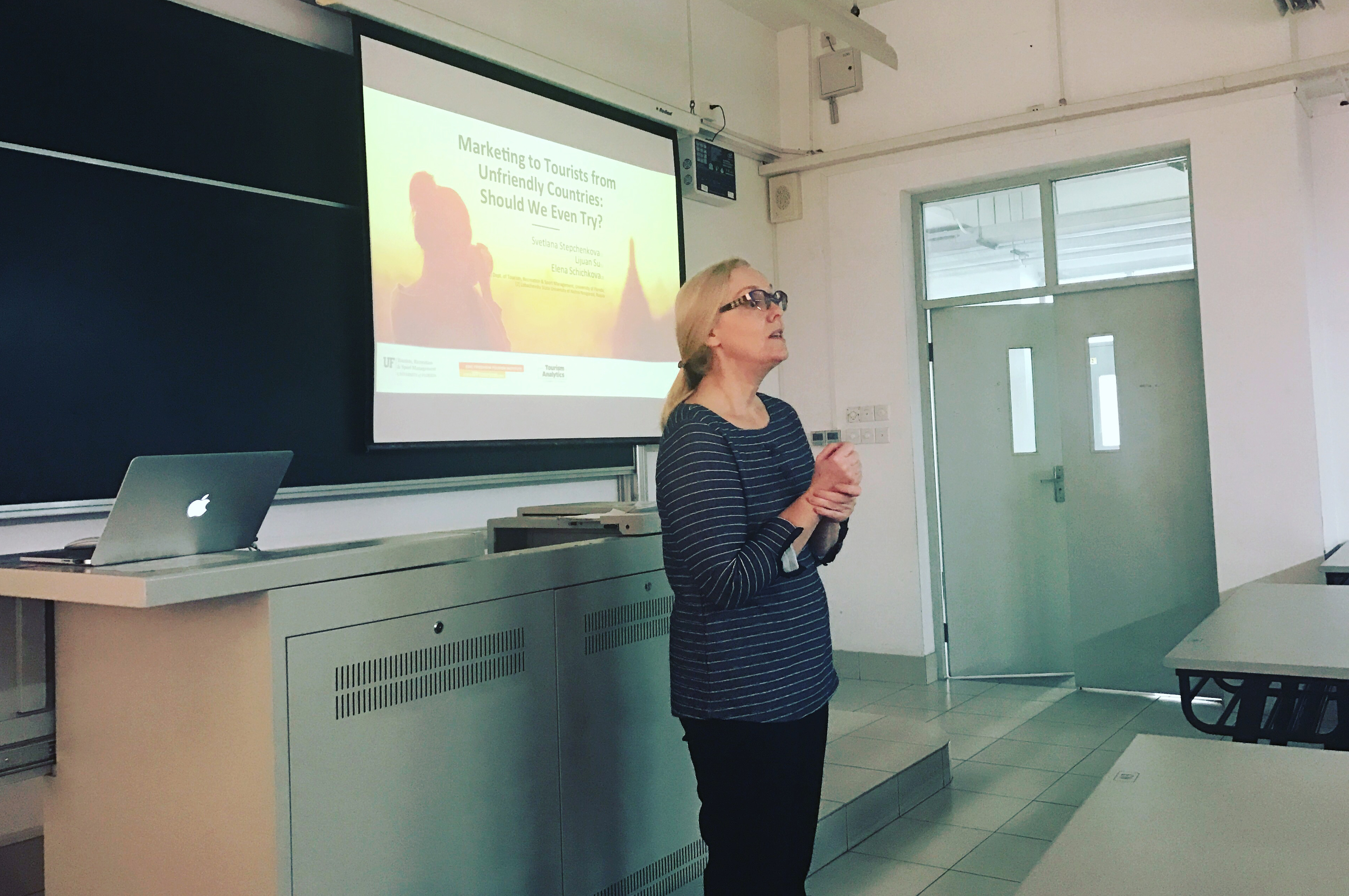受工商管理学院旅游与会展系党宁老师邀请,2017年10月23日上午,美国佛罗里达大学旅游、游憩与体育管理系Svetlana Stepchenkova副教授莅临我校,在闵行校区第一教学楼237教室,为旅游与会展系师生进行专场学术讲座。讲座由党宁老师主持,三十余名本科生及硕士研究生参加了此次学术活动。