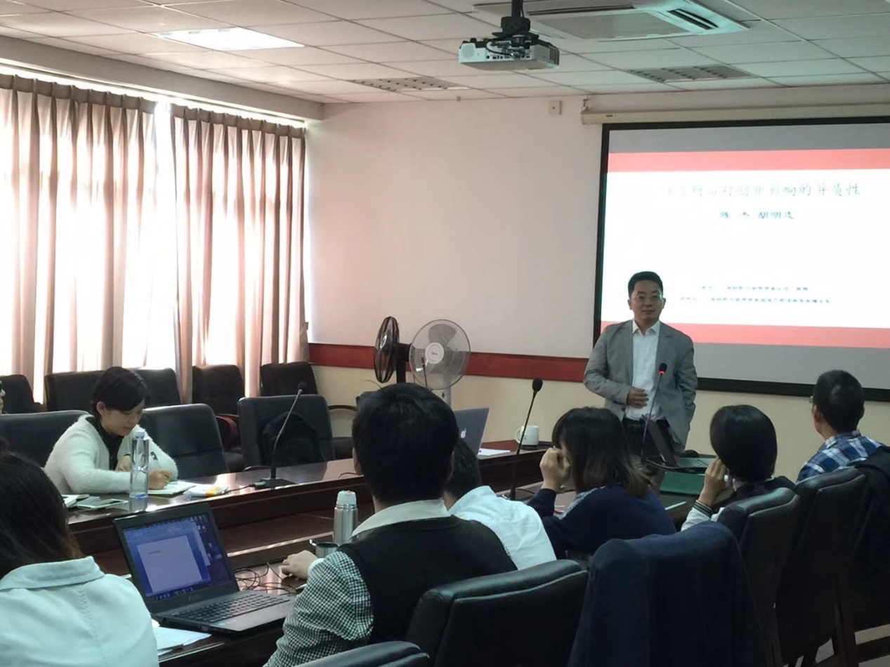 会上,陈杰教授以《住房财富对创业影响的异质性》为主题,对此文的研究背景、分析框架以及研究结果,以独特的视角研究住房财富与创业的关系,住房拥有者的创业概率要低于租户,但是房价上涨导致的住房财富增加会减轻住房资产对创业的抑制作用。住房增值对创业的影响仅仅存在于完全产权房,完全产权房同时具有“财富效应”和“抵押效应”,而部分产权房仅具有“财富效应”。在陈杰教授的介绍之后,博士生胡明志又详细地讲解了文中数据处理部分,使在座师生更加深入的了解了研究的规范性与科学性。