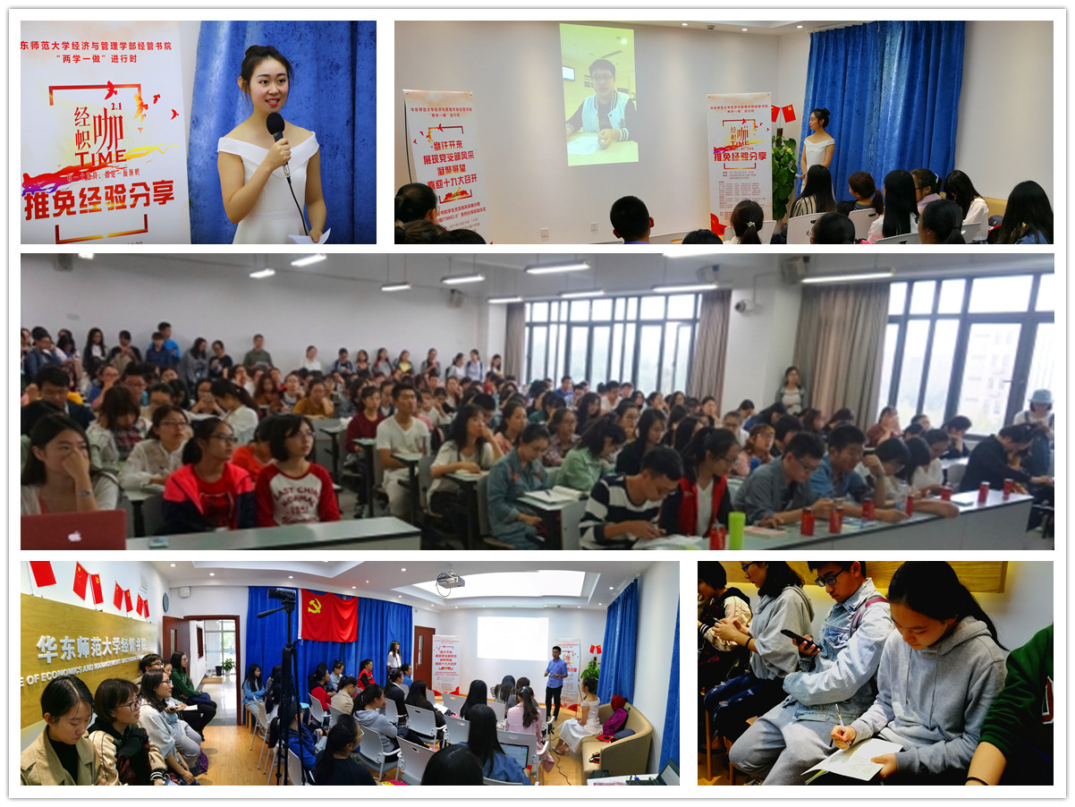 “经帜咖TIME”系列分享是由经管书院学生党员发起的践行“两学一做”学习教育精神和书院特色“朋辈教育”理念的活动,以“每一个党员,都是一面旗帜”为口号,通过经验分享的形式,旨在亮明党员身份、彰显优秀典型、关注身边热点、解答具体疑问,以期更好地发挥党员先锋模范作用,服务身边同学,产生实际影响。活动强调党员主体作用的发挥,也吸纳团员青年中的优秀代表共同参与,通过发起同学们感兴趣的话题、推介达人、征集提问、集中分享解答、个别交流的流程,把优质的资源和经验分享给各位同学,加强学生党员和其他同学特别是低年级学生之间的联系。本期“经帜咖TIME 2.1·推免经验分享”活动由经管书院党建办公室和就业创业办公室共同主办,学生党建工作室、就业创业办公室生涯发展中心和各学生党支部联合承办。
