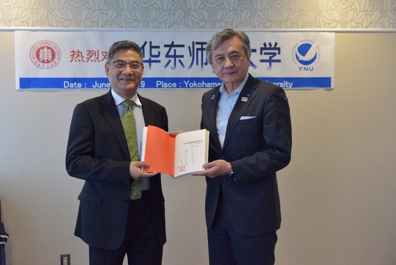 在结束对东京大学的友好访问后,代表团一行赶赴横滨,访问横滨国立大学。横滨国立大学校长长谷部勇一教授会见了代表一行。长谷部勇一校长表示,他在担任经济学部学部长时曾多次访问我校,并为我校经管学生开设学分课程,与华东师范大学有着很深的渊源和感情。袁志刚主任对长谷部勇一校长给予两校合作的大力支持表示感谢,并赠送了其所著的《养老保险经济学-解读中国面临的挑战》一书。