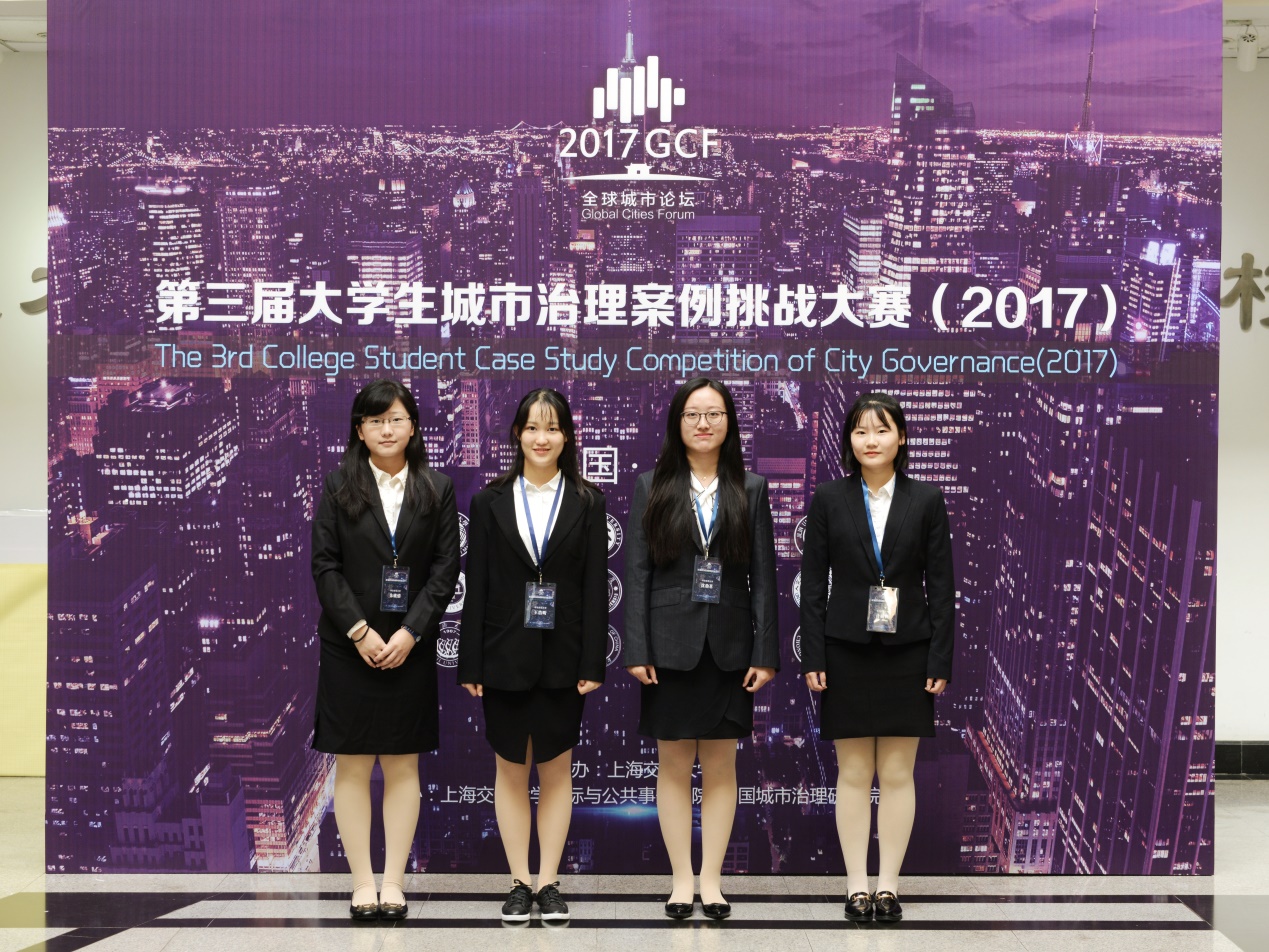 在2017年10月28至29日举办的第三届大学生城市治理案例挑战大赛中,公共管理学院赵继娣老师和李悦老师指导的代表队进入全国决赛,获得前6强的名次,被授予优秀团队奖。参赛队员为公共管理学院的沈劭茗、王浩昕、计诚帆和朱姚情。