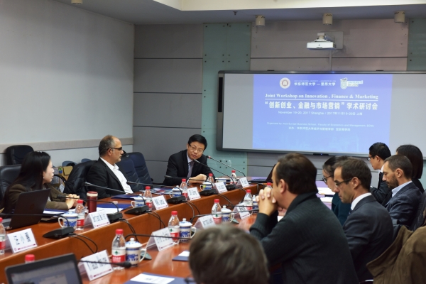 2017年11月19日至20日,首届华东师大-里昂大学中法“创新、金融与市场营销研讨会”在我校举行。来自里昂二大、里昂三大、里昂商学院的9名教授与华东师范大学经济与管理学部的同行们在两天的时间里围绕“创新、金融与市场营销”三大主题展开了深入的交流与合作探索。