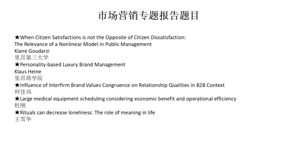 在随后的合作讨论中,嘉宾们各抒己见,对科研合作、联合培养博士、教授互访等问题展开热烈讨论。此外,各方就每年定期召开研讨会达成共识,并计划将研讨会涵盖的学科进一步扩大。 经讨论,第二届中法“创新、金融与市场营销研讨会”计划将于2018年11月在法国里昂市举行。