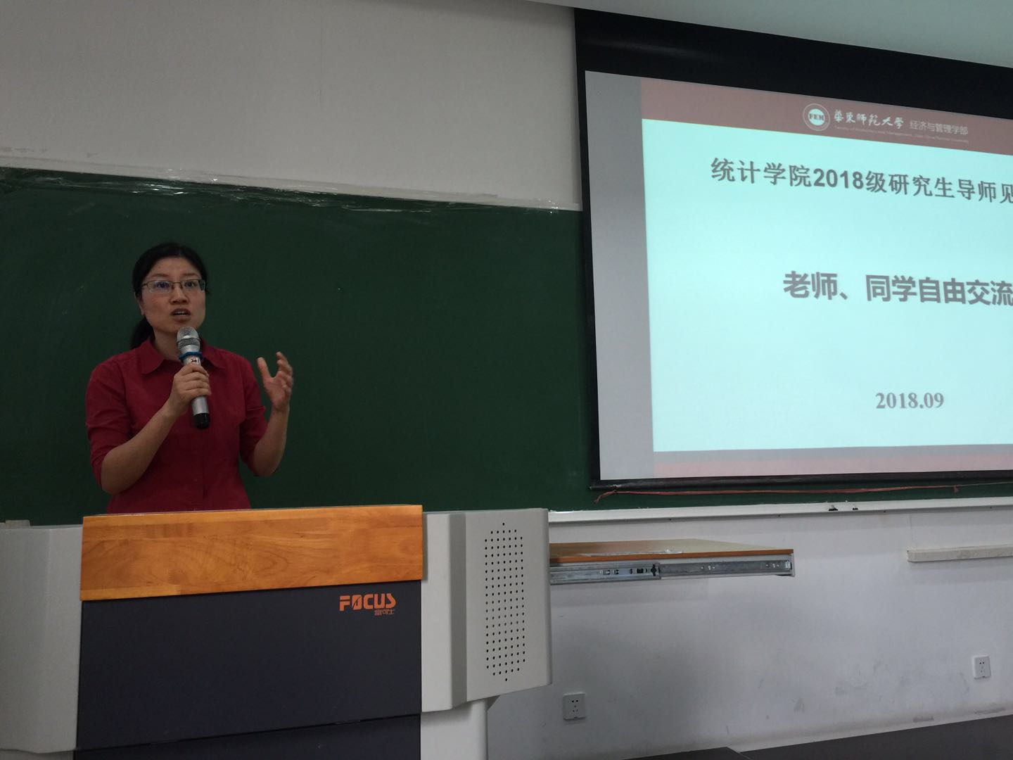 2018年9月11日上午9:00,统计学院在中山北路校区地理馆201教室召开了2018级研究生导师见面会。会议由统计学院教工党支部书记周迎春主持,统计学院院长张日权,副院长吴贤毅、吴述金,统计学院教师和2018级研究生参加了会议。