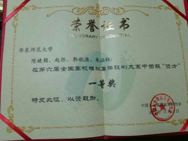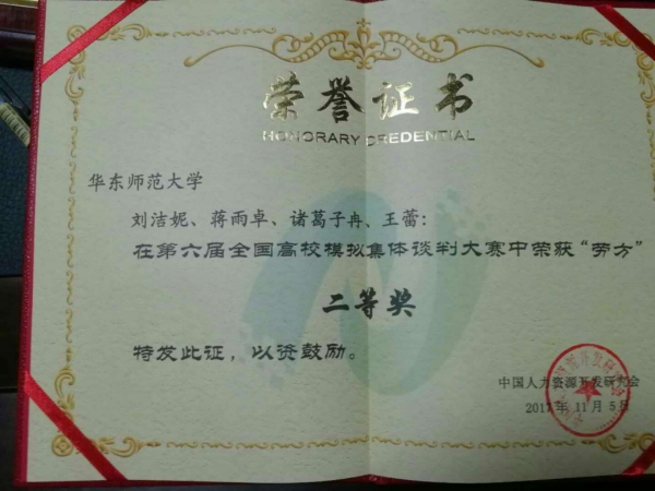 2017年11月4日,第六届全国高校模拟集体谈判大赛在西北政法大学拉开序幕。2016级本科生陈婕颖、赵烁、郭秋渔、朱涵钰组成资方代表,刘洁妮、蒋雨卓、诸葛子冉、王蕾组成劳方代表,在公共管理学院邱婕老师的带领下,组建华东师范大学代表队,披襟斩棘,突出重围,取得佳绩。我校参赛队伍荣获“最佳组织奖”,我校资方代表队荣获“一等奖”,劳方代表队荣获“二等奖”,赵烁、王蕾同学荣获“最佳谈判员”,带队老师邱婕荣获“优秀指导教师一等奖”和“最佳案例奖”。全国高校模拟集体谈判大赛是劳动关系领域的重要专业性赛事,有助于推动相关学科的建设和发展,极具实践意义,同时为人才培养、学生成长提供了良好契机。来自全国各地的70支队伍参加了本届大赛。