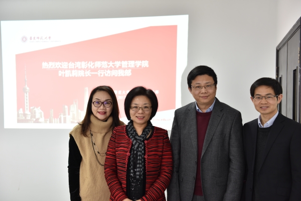 12月15日上午,台湾彰化师范大学管理学院院长叶凯莉教授一行访问我部,该校管理学院黄敏翠陪同来访。经济与管理学部副主任何佳讯教授会见叶凯莉一行,学部国际交流与合作办公室吴剑飞、吴雨晴参与了会见。