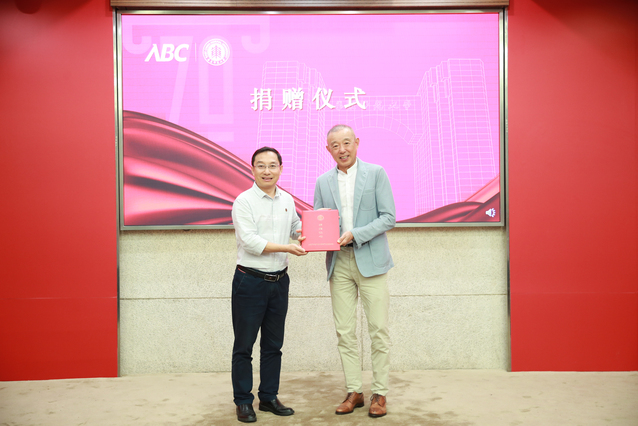 在王新奎、梅兵、雷启立、连平、袁志刚、岳华、余丹珏的共同见证下,斯阳与陈琦伟签署捐赠协议。