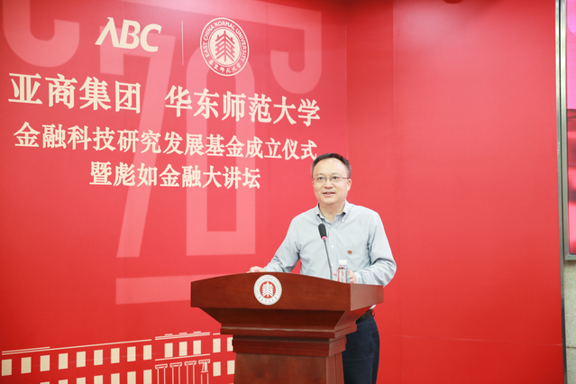 金融科技发展基金成立仪式暨彪如金融大讲坛今天上午在中山北路校区举行。全国工商联原副主席、上海市人民政府参事、上海WTO事务咨询中心理事长王新奎,上海亚商发展集团有限公司董事长陈琦伟、董事长特别助理余丹珏、副总裁张俊,华东师大党委书记梅兵、副校长雷启立、校长助理、基金会秘书长斯阳,经济与管理学部名誉主任连平,上海自由贸易试验区临港新片区管委会专职副主任赵义怀,中共上海市社会科学界联合会党组成员、二级巡视员陈麟辉,交通银行发展研究部总经理方卫星,上海商学院副院长贺瑛,及我校部分职能部门负责人、相关领域专家、经济与管理学部师生代表出席活动。金融科技研究发展基金成立仪式由雷启立主持。