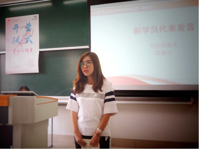 经管书院团委书记杨亚星首先进行致辞,作为往届训练营学员成长的见证者,她希望新任团学骨干们能坚守团学工作的初心,时刻铭记更好为同学服务的宗旨;要能抓住团学工作的核心,站位要高、立意要远,制定团学工作计划要能跟学校“双一流”建设、学部人才培养目标、书院建设发展目标相结合,同时还要能立足经管学科学生成长发展的实际;要能构建团学工作的凝心,在团校这一平台上凝心聚力,交流互助,让团校成为不同学科、不同年级学生干部聚集的“家”。