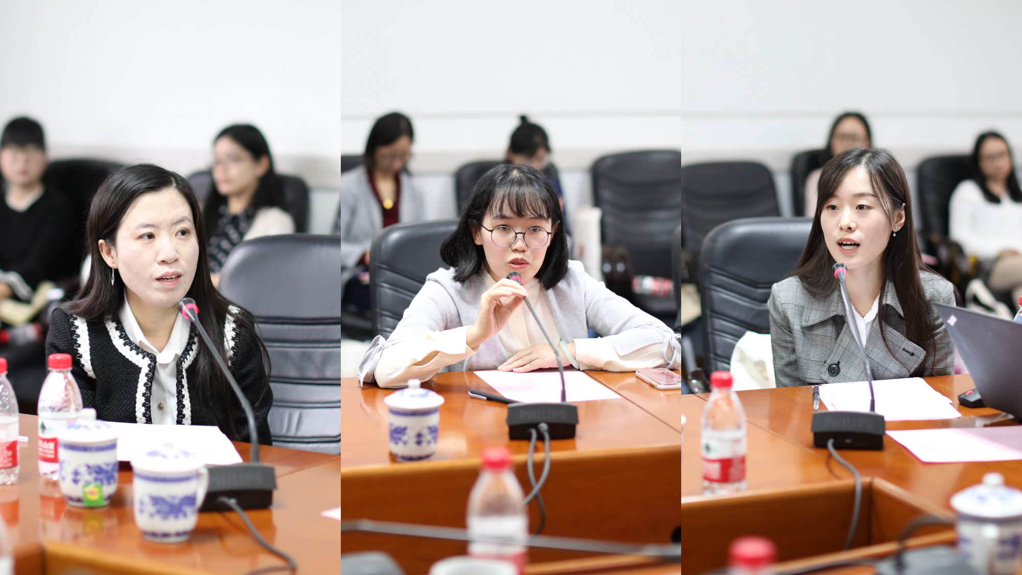 新进教师代表发言(自左向右:王雪华、李嫦、栾赛娜)