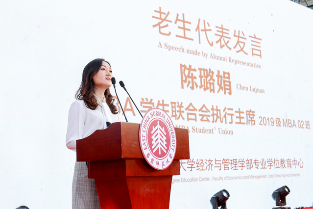 作为老生代表,MBA联合会执行主席陈璐娟同学在发言中,分享了MBA一年的学习感悟,从坚定目标到树立信心,从求学择业到为人修身,从身心健康到创新奋斗,华东师大给予她启迪,引导她树立正确的世界观、人生观、价值观。从读书,到健体,再到看待世界的格局,都得到了全方面的开拓与提升。通过参与学校的各类学习活动平台,她也更为深刻地领悟了“尊重、理解与奉献”的意义。