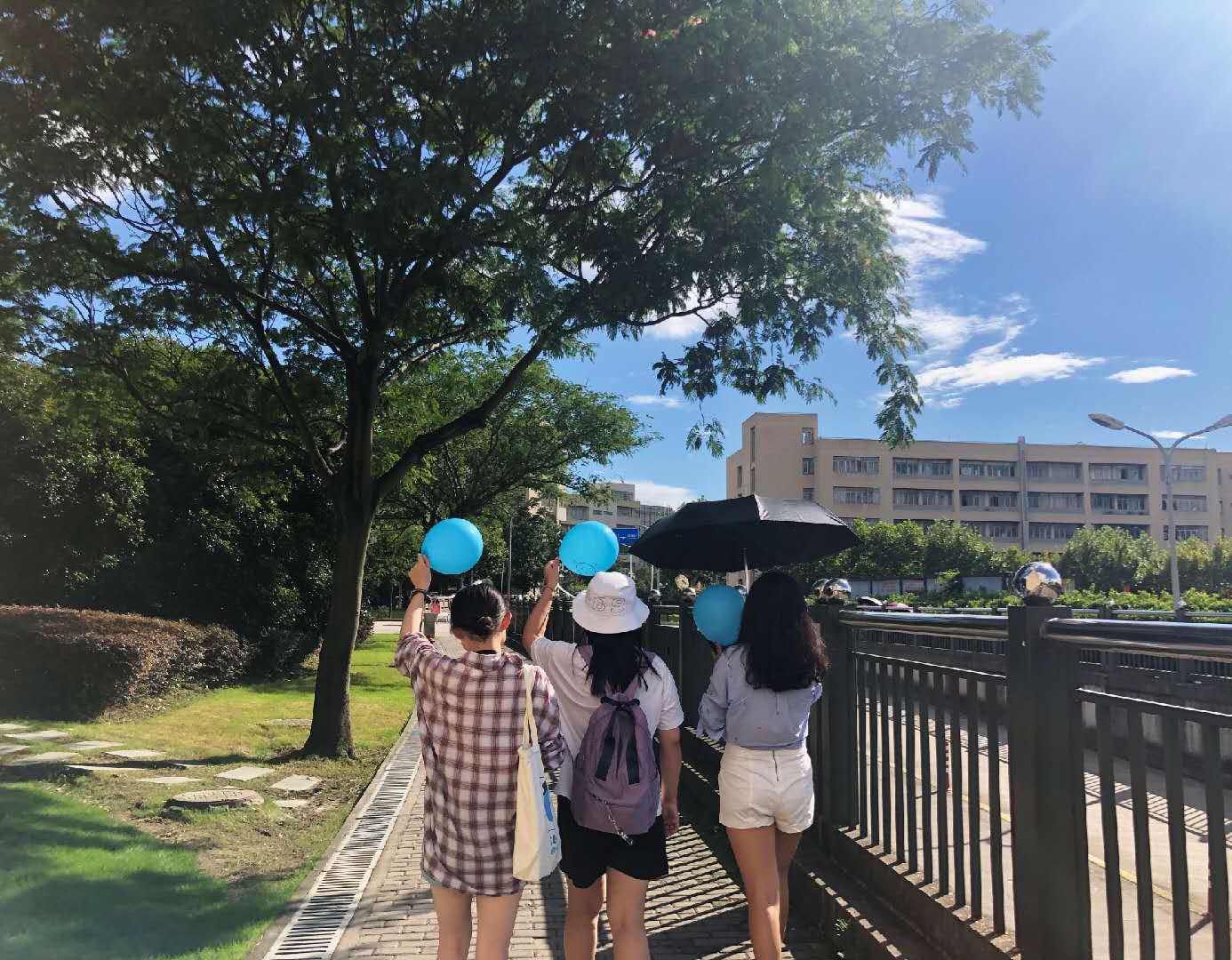 下午3点到6点,学导被导们陆陆续续地来到19号楼经管书院大厅。在确定路线后,大家根据校园地图及碎片提示开始了游园之旅。志愿者部事先设计的5条路线贯穿整个校园,北至宿舍区,南达南门,东至大活,西至西操,途经学校各个标志性建筑。实地拍摄的提示照片也增加了游园会的难度与乐趣。大家拿着印有经管书院吉祥物——小鲸鱼的蓝色气球,在校园的各个点拍照打卡。大活、体健院、图书馆都可以看到他们一同前进的身影。