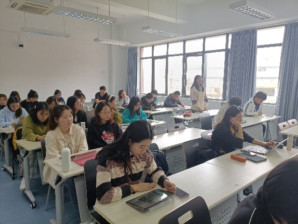 接着,袁女士通过两个案例详细介绍了会展经济的相关管理知识。她通过在建筑大会的工作经验介绍了会议工作的内容,涉及注册管理、会议整体策划、时间管理、会前VIP管理、人员指引、申报管理、市场宣传管理、演讲嘉宾分析报告、人员撤离管理方案、多功能日程监控系统等。随后,她又通过在LEC授权展的经历介绍了展览业相关内容,重点突出行业数字化的特征,给同学们介绍了在线广告、抖音投放、IP直播间、云课堂等数字化方式,并指出当前在线会展人才缺口很大,推荐同学们往这个方向发展。报告结尾,袁女士分享了自己五条从事会展业的感悟,分别指出大型会展仍是重要平台、会展行业人才缺口大、急需探索新模式、会展行业是更公平的竞争环境、从事该行业需要对会展的热爱。