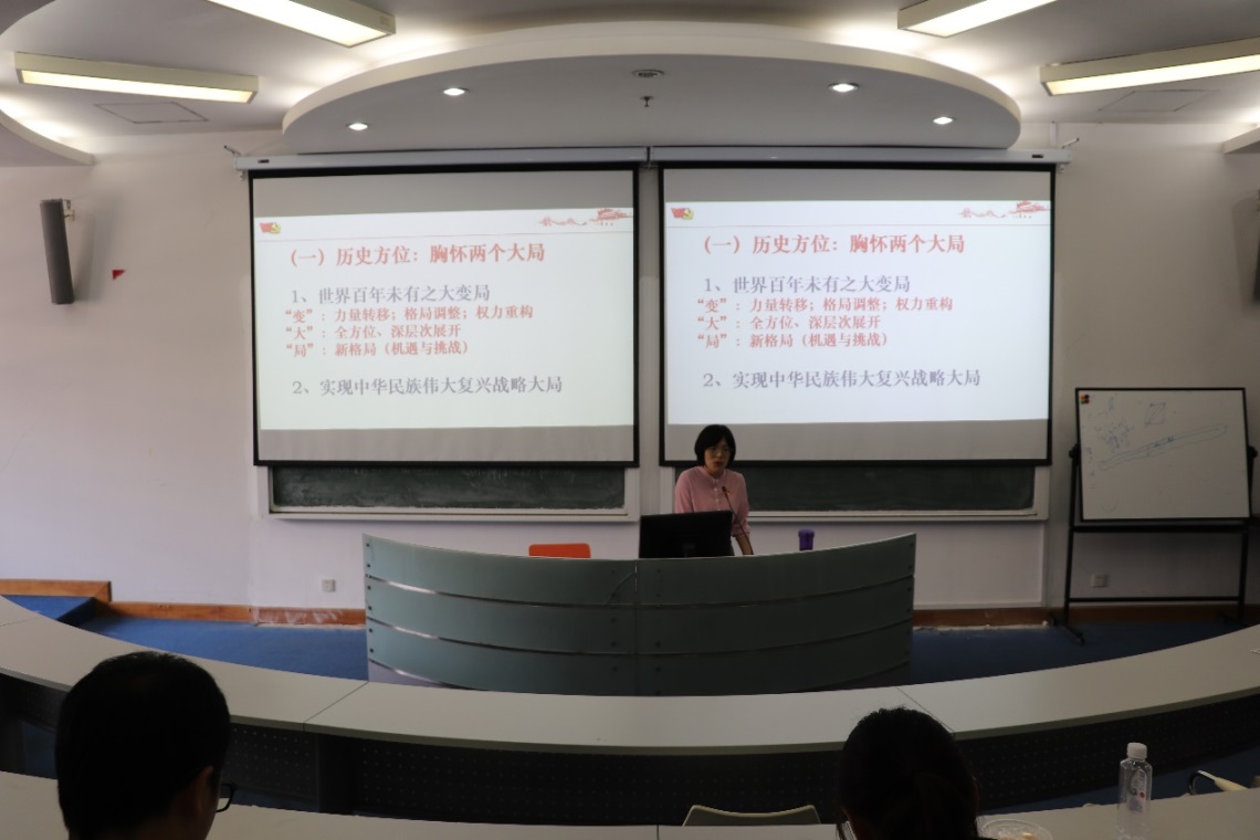 马克思主义学院闫方洁教授作了“胸怀两个大局,坚持以人民为中心--《习近平谈治国理政》第三卷学习体会”的报告。闫老师以《习近平谈治国理政》第三卷的相关内容为基础,从胸怀两个大局,即世界百年未有之大变局和实现中华民族伟大复兴战略大局出发,分析了在面临世界权利、经济格局转移、科技进步和通讯领域变化时,中国发挥的至关重要的作用。此外,党员同志要坚持以人民为中心,弘扬共产党人的一以贯之的价值观,树立落实新发展理念,推进国家治理能力和治理体系现代化,不断开辟21世纪马克思主义新境界。